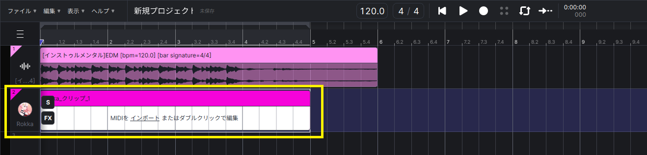 作りたいトラックとロケーションの所でクリックするとクリップが作成され、準備完了です。