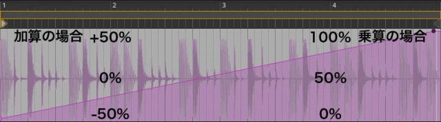 加算と乗算のオートメーションは、絶対オートメーションで設定したオートメーション信号を入力した値で変化させます。