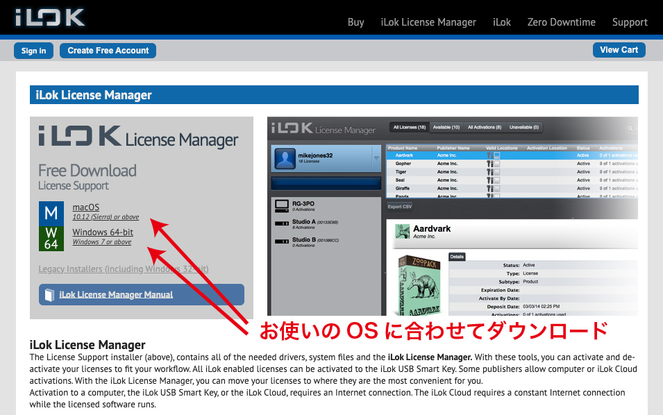 以下のURLからiLok License Managerをダウンロードしてインストールしてください。