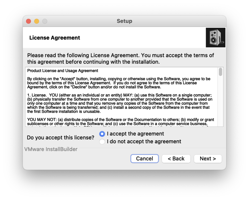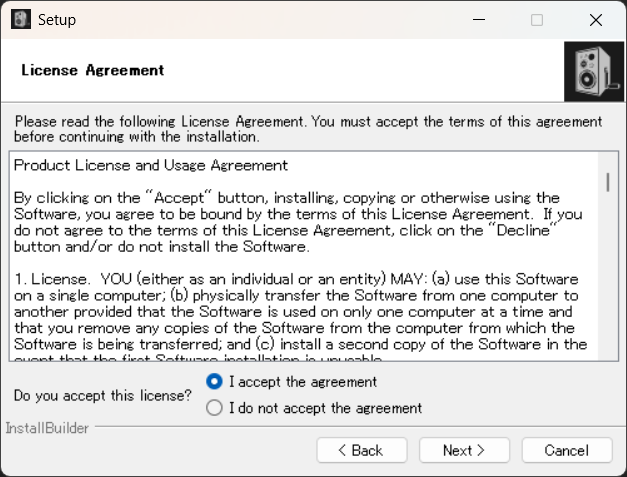 使用許諾契約に同意する場合は「I accept the agreement」にチェックを入れてNextをクリックします。