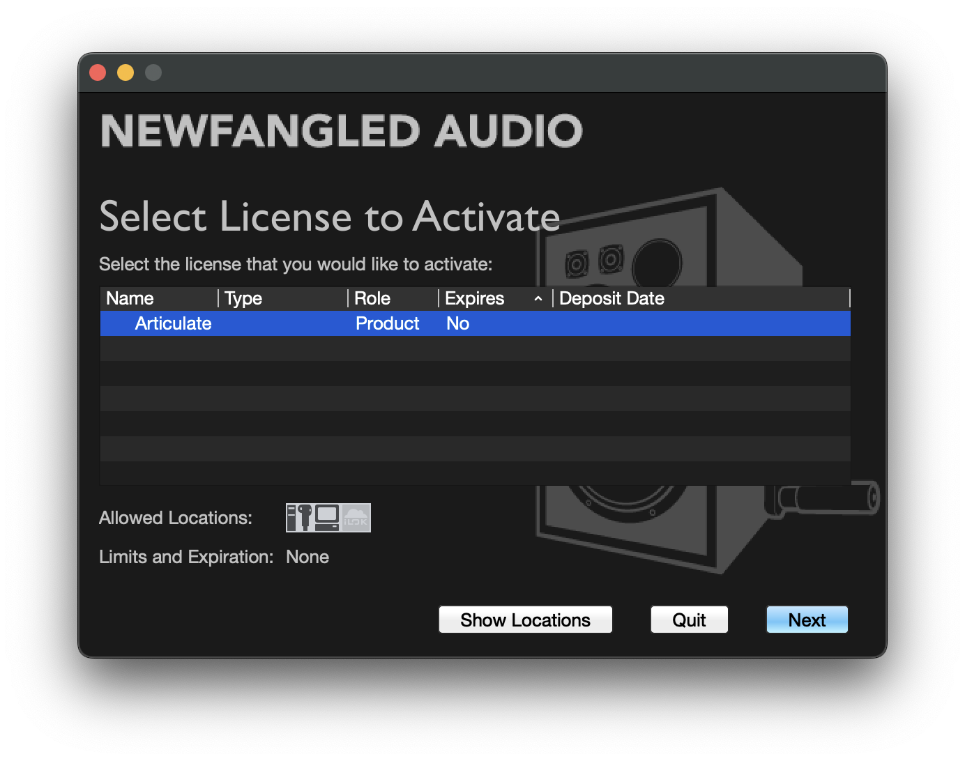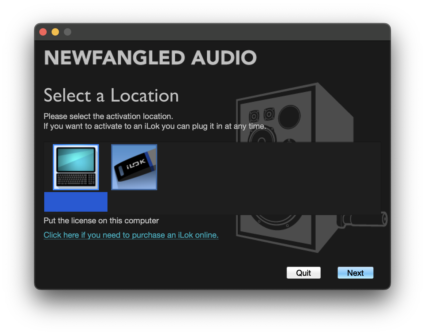 3. アクティベートを行う場所(コンピューター本体、ilok USBキー)を指定し、Nextをクリックします。