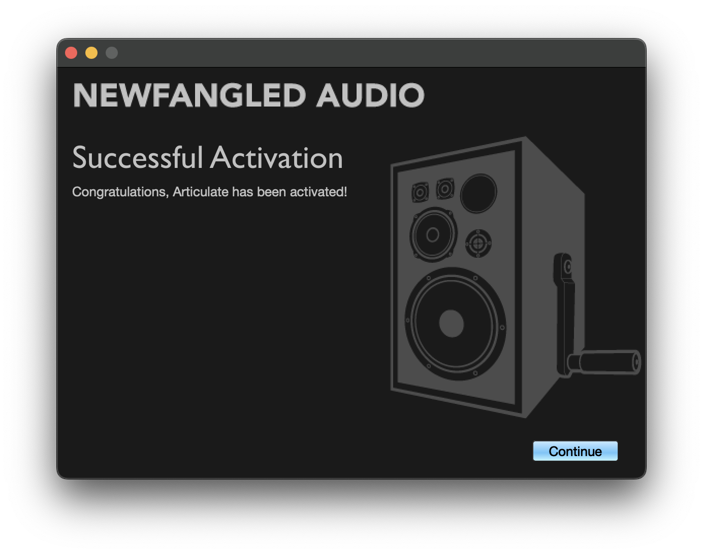 4. Successful Activationと表示されたら、アクティベートが完了です。Continueをクリックします。