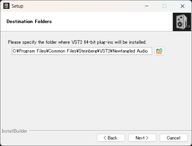 インストール先を指定してNextをクリックします。