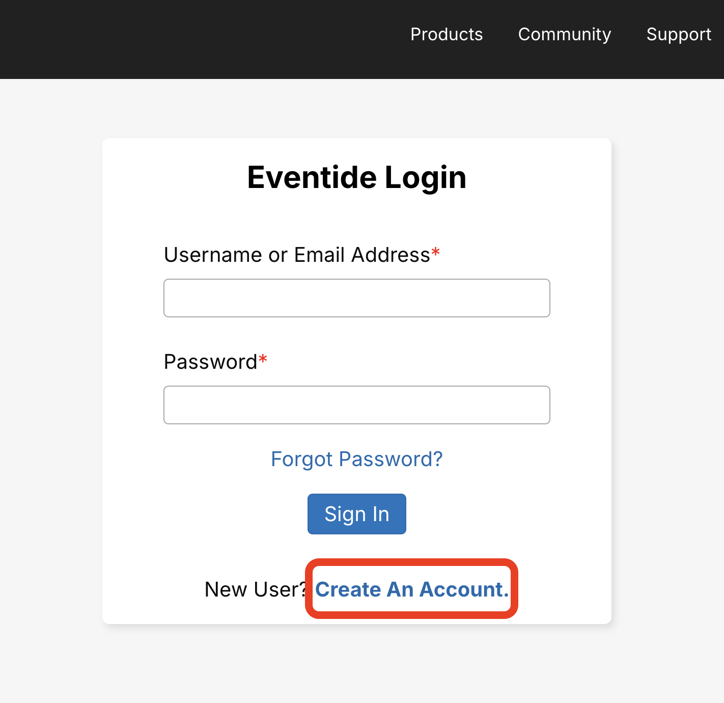 1. Eventideのログインページにアクセスし、Create An Account.をクリックします。