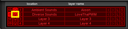 読み込ませた後、図示した部分をクリックするとそのレイヤーが発音可能な状態になります。