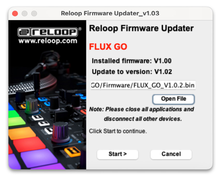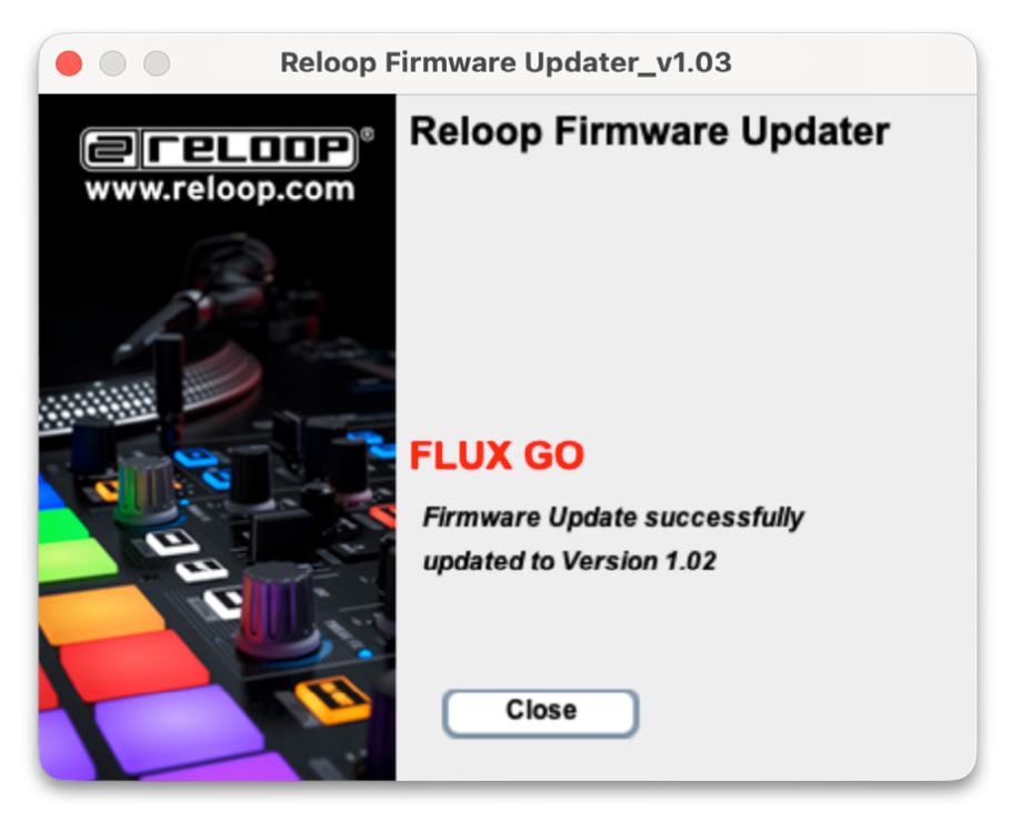 Reloop Flux Go ファームウェア v.1.02 アップデート情報