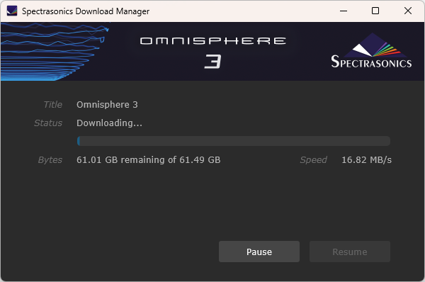 8. 指定した保存先に「Omnisphere 3 Installation」という名称のフォルダーが作成され、インストーラーのダウンロードが開始します。回線環境により数十分〜数時間を要する場合があります。