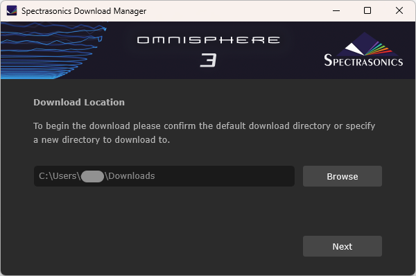 ※ ここでOmnisphere 1 / 2のライブラリーフォルダー(STEAM)をダウンロード先に指定しないようご注意ください。