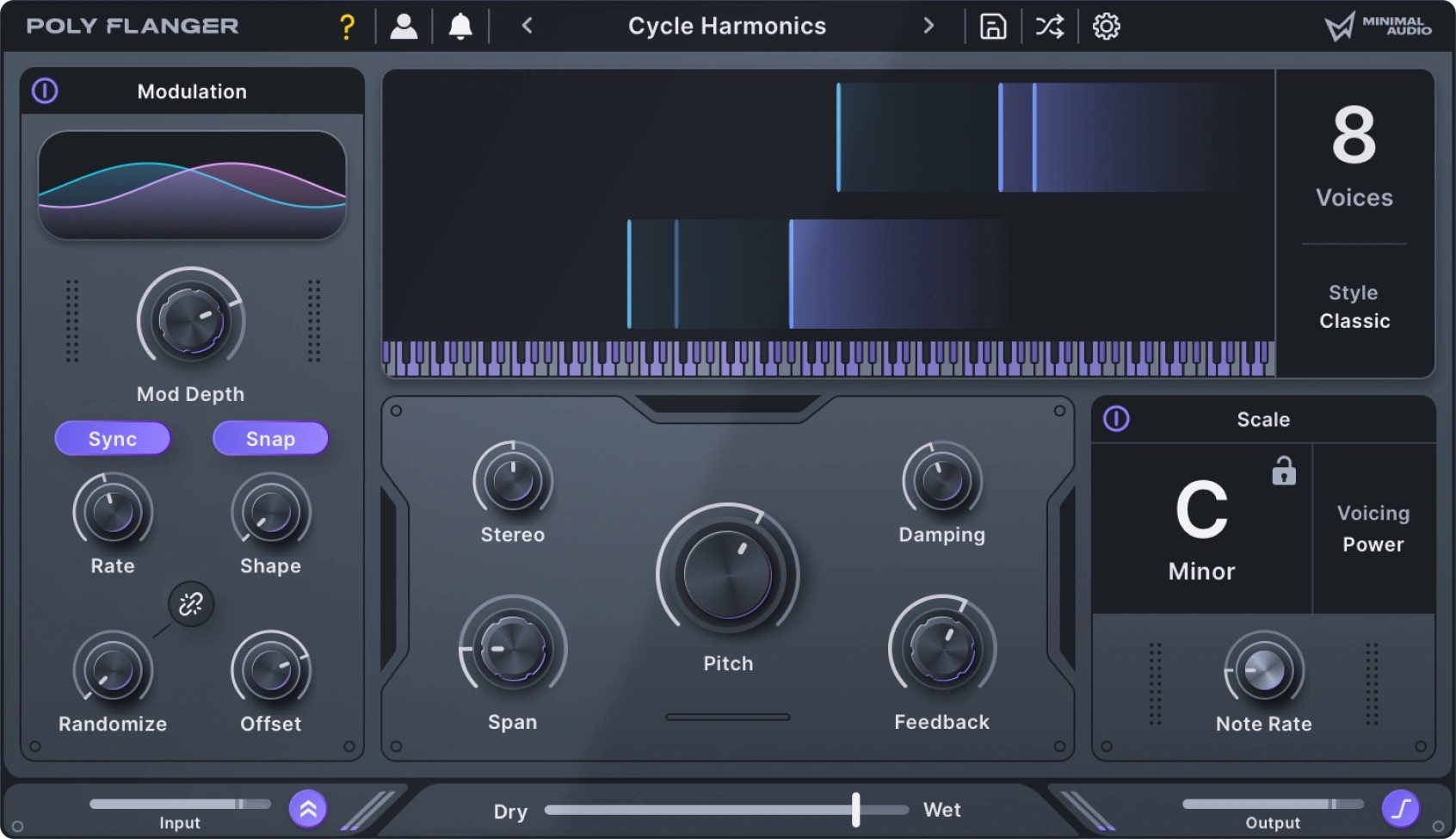 Poly Flangerは、トラックのキーと完全に調和したモーションを構築するために設計された、音楽的な知性を備えた次世代のインテリジェント・フランジャーです。