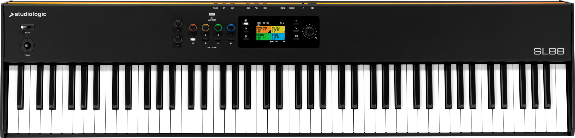 - SL88 MK2:軽量性と堅牢性を兼ね備えたハンマーアクション鍵盤採用、88鍵モデル