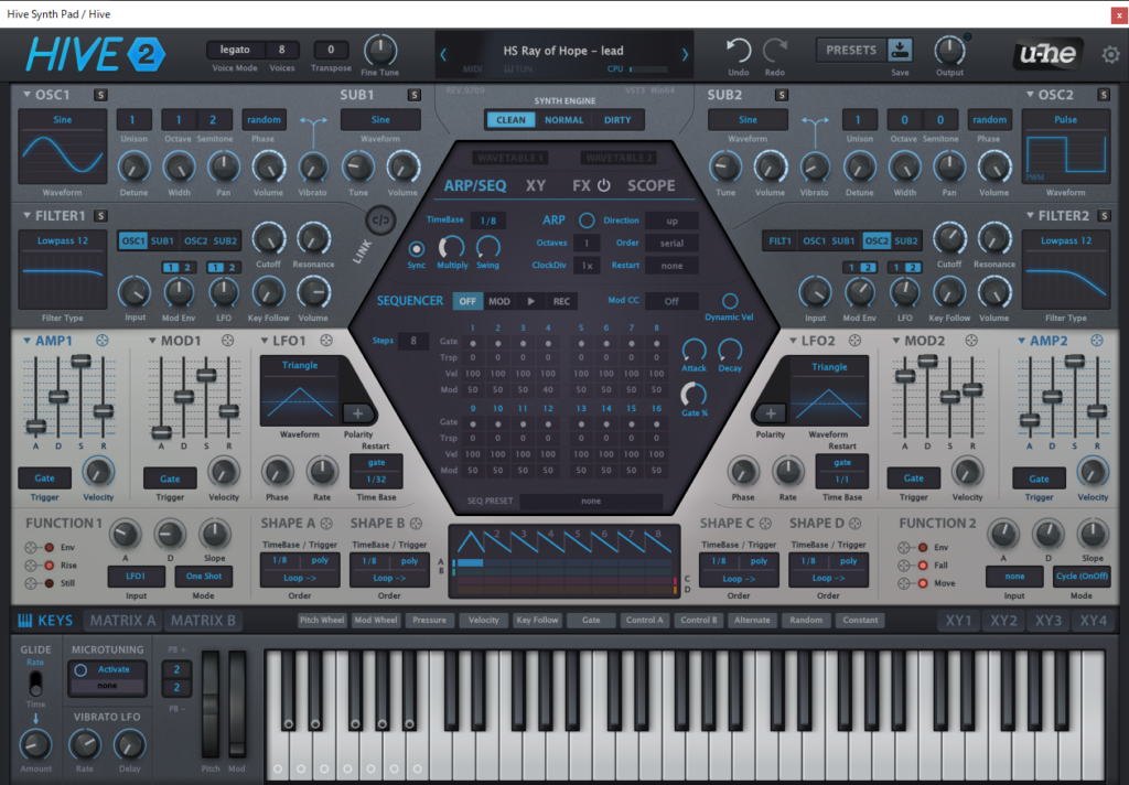 その過程でHive 2のプリセットをあれこれ変えながらフレーズを色々弾いて考えていた時に選んだプリセット音色“HS Ray of Hope – lead”がヒントとなっています。