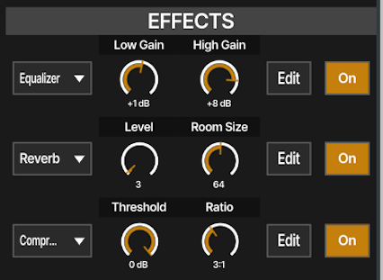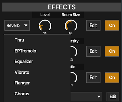 各エフェクト・セクションに18種類のエフェクト・タイプ