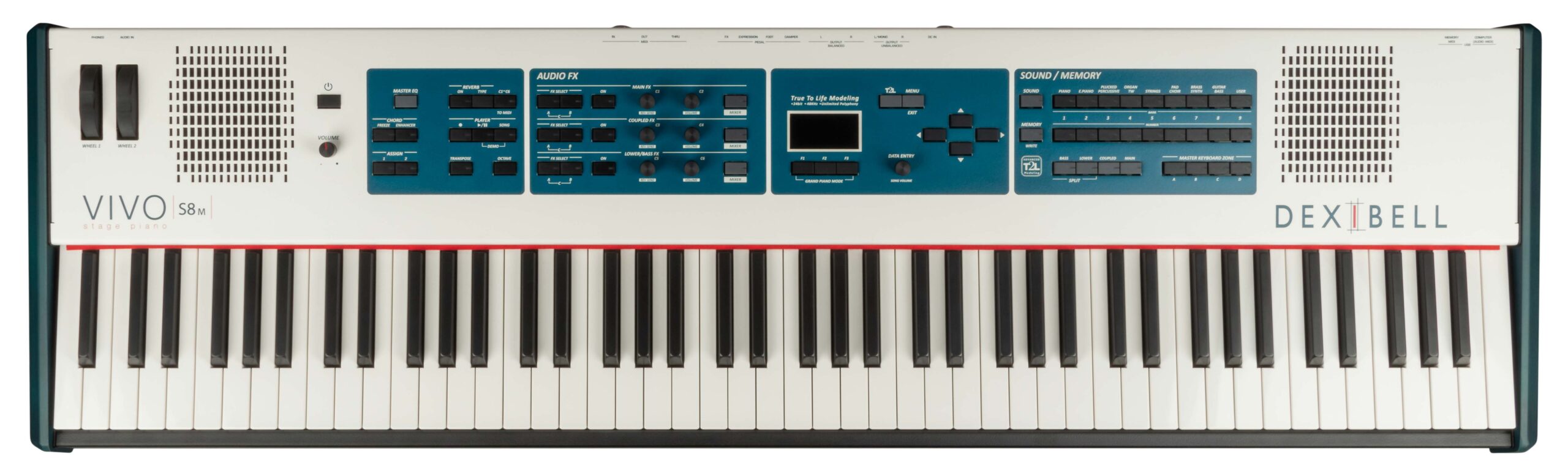 VIVO S8Mは、3点接点88鍵「ハンマーアクション」キーボードと、独自のTrue to Lifeテクノロジーを更に強化した「Advanced T2L」に加え、計70 Wのステレオスピーカーを搭載し、ステージピアノのカテゴリーで最も高度なパフォーマンスをミュージシャンに提供します。