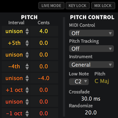 新しいピッチトラッキング「オフ」モードにより、ポリフォニックサウンドやリズミカルなサウンドでも真価を発揮します。MixLock機能は、プリセットやユーザー定義のスナップショットをスクロールする際に、エフェクトのウェット/ドライのミックスバランスを固定します。Key Lock機能も同様に、キーとスケールを固定します。