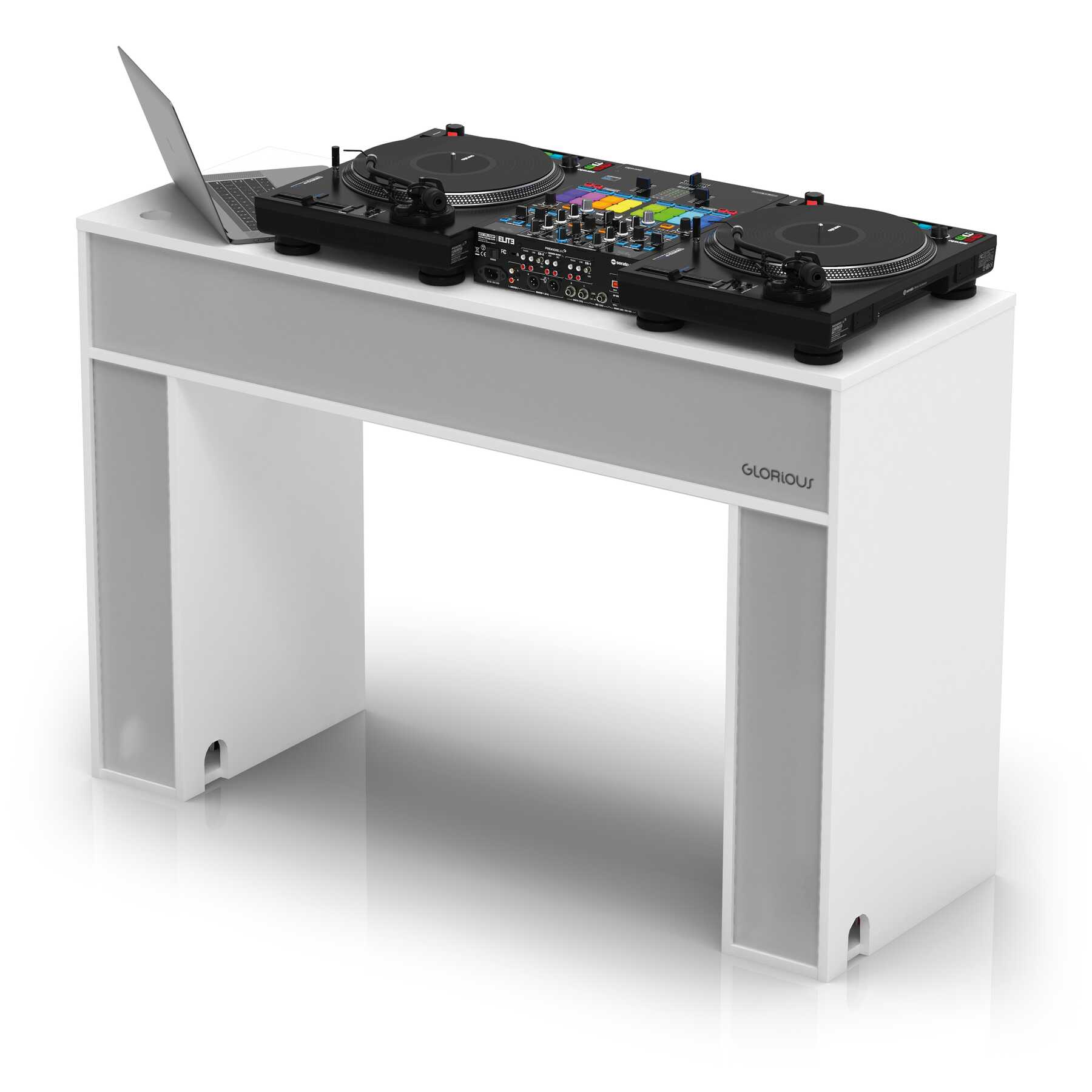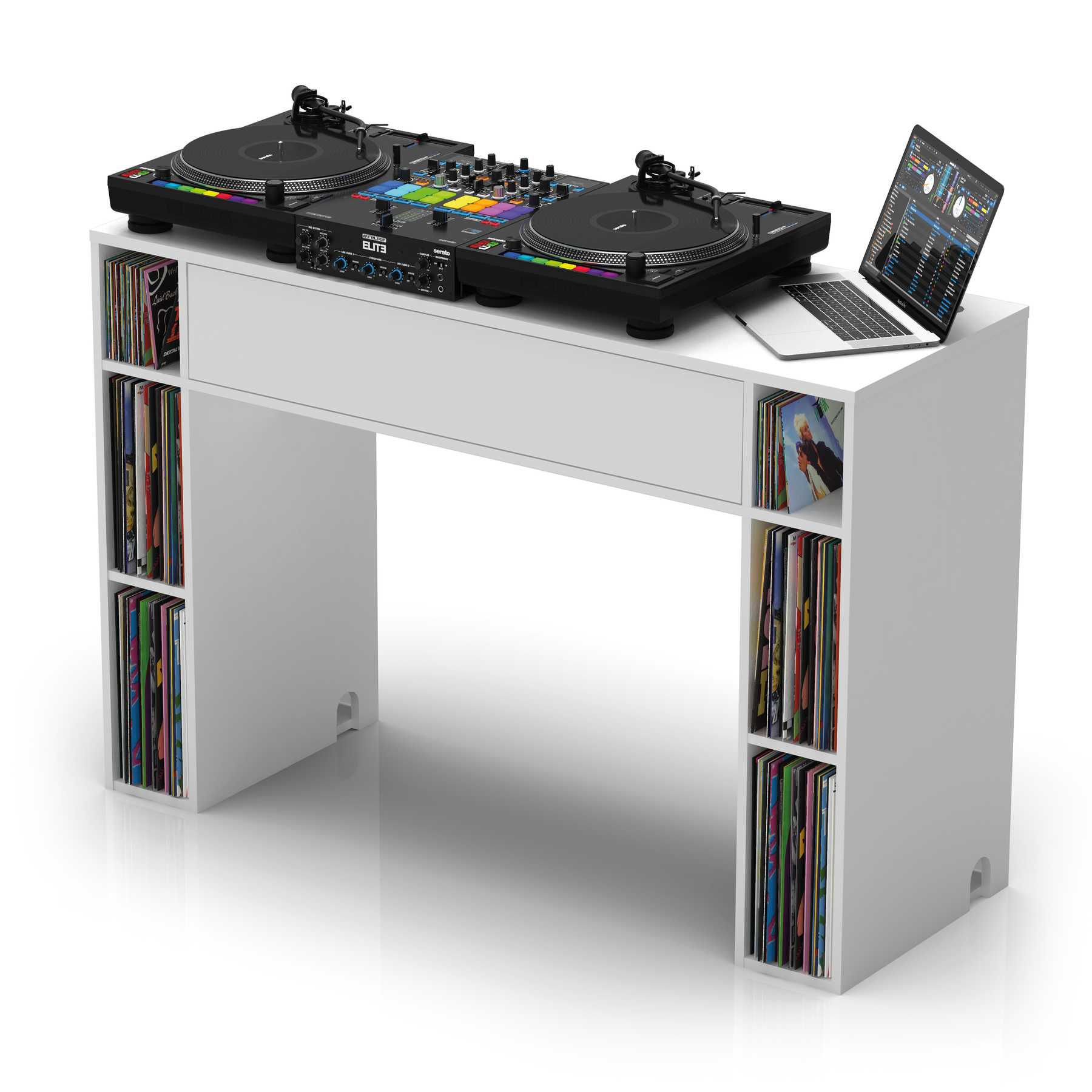Modular Mix Stationは、最大200枚の12インチレコードと120枚の7インチレコードを収納できる十分な容量を備えています。上部の作業面には、ターンテーブルまたはCDプレーヤーを2台とミキサー、もしくはコントローラーとラップトップPCを配置可能です。