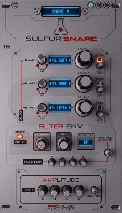 Sulfur Snareは、単なるスネア・サンプル・パックではありません。モジュラー式の「スネア・クリエイション・エンジン」です。そのパワーの源は、独自の「3レイヤー・アーキテクチャ(Soft/Hard/Noise)」にあります。トーン、テクスチャー、そしてパンチ感を、かつてない深さでコントロール可能です。