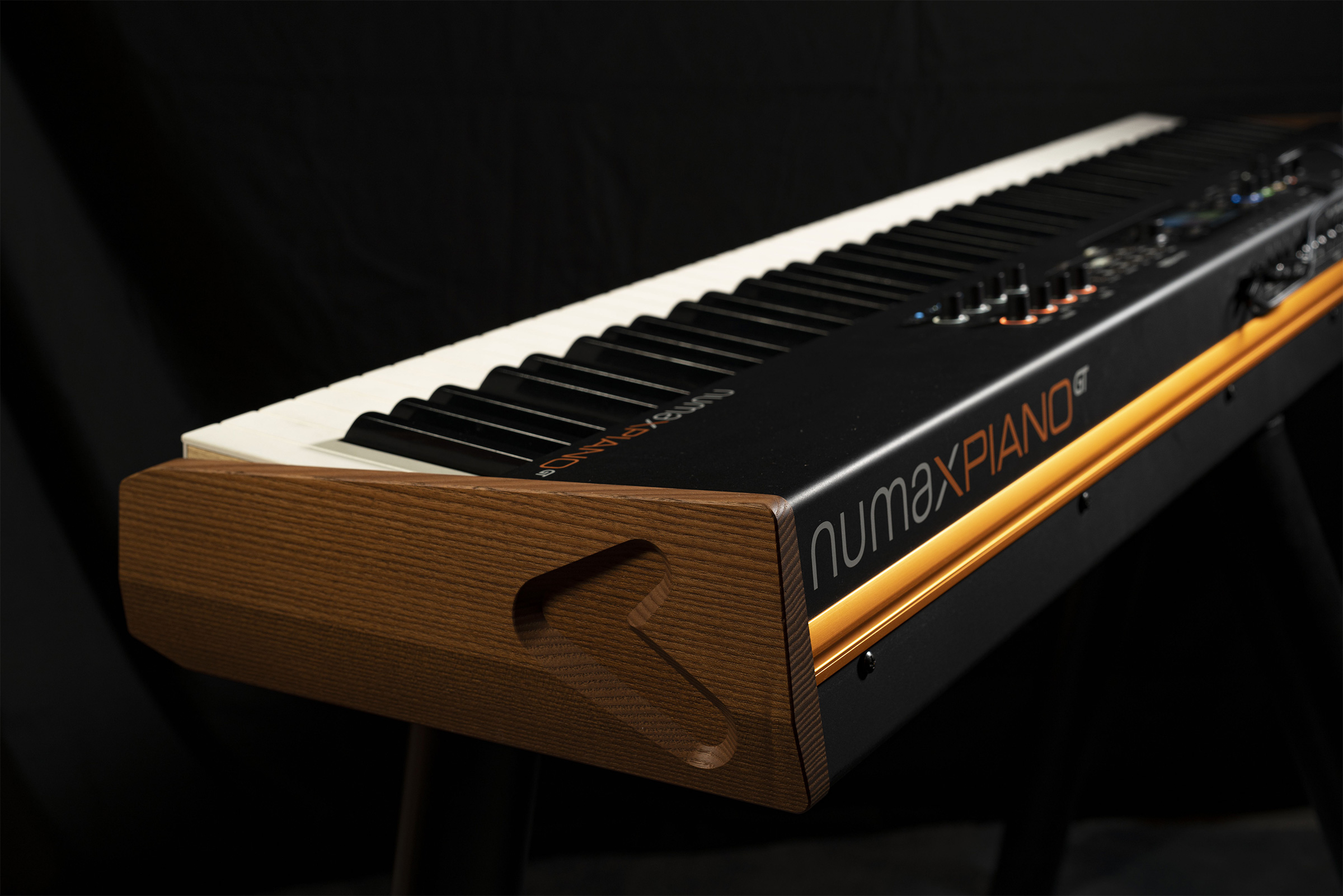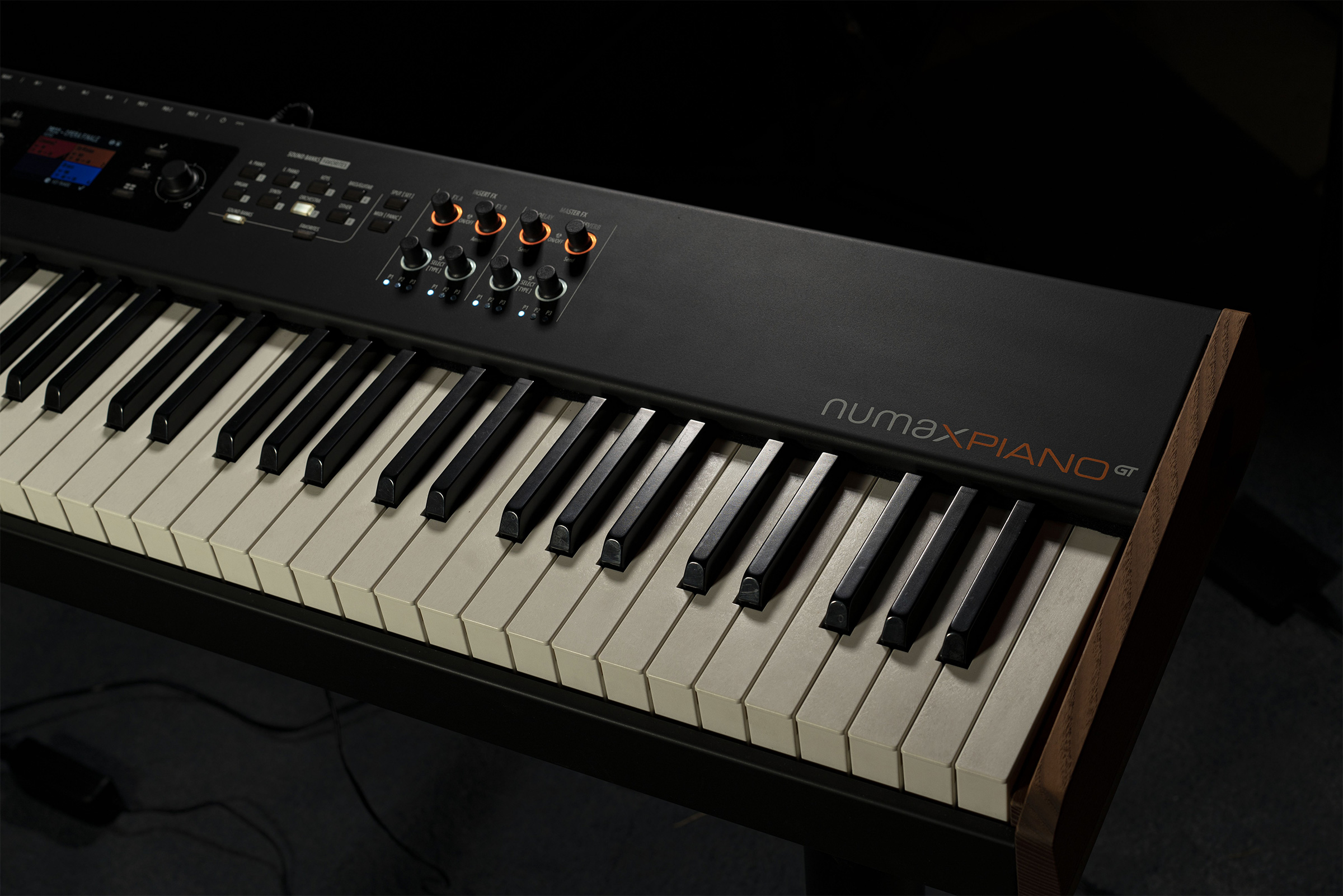 Numa X Piano GTに採用されている、新しいピアノ鍵盤「TP/400 Wood」は、従来の木製ハイブリッド鍵盤「TP/40 Wood」を更に進化させたものです。新しい白鍵は、より良いフィーリングを得るために、より重く、よりバランスが取れています。サイドの木材を薄くすることで、安定した演奏が可能になりました。エスケープメントの効果は、アコースティック・グランドピアノに極めて近く、リアルな演奏体験が可能です。
