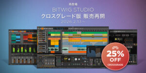 【再登場】Bitwig Studio クロスグレード版、2026年2月13日(金)より販売再開! Bitwig Studio クロスグレード版を2026年2月13日(金)より販売再開いたし... 2026年2月6日