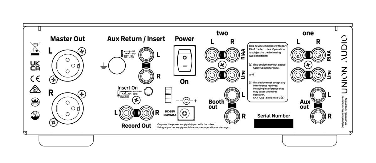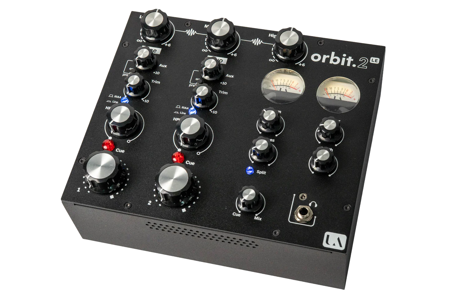 マスターセクションには、マスター出力、ブース出力、およびAuxリターンの個別のレベルコントロールが配置されており、2つのバックライト付きカスタム・アナログVUメーターによって正確な信号モニタリングが可能です。強力なヘッドホンアンプはスプリットキューとキュー/ミックスの両方に対応し、1/4インチと3.5 mmの両方のヘッドホンジャックソケットを備えることで、最大限の汎用性を確保しています。