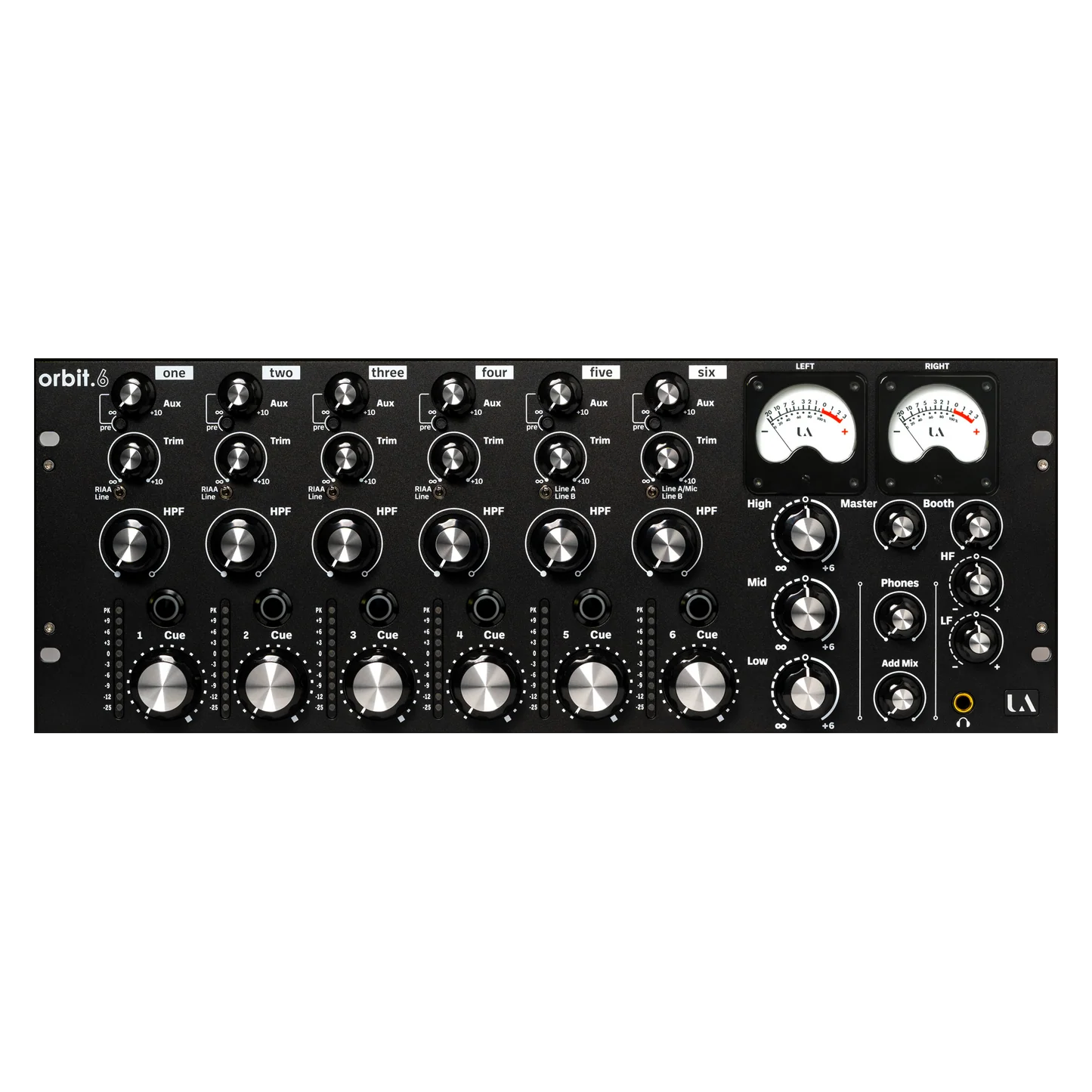 orbit.6は、長寿命と卓越した音質を保証するため、プレミアムグレードの素材とコンポーネントのみを使用して製作されています。 フロントパネルは6 mm厚の5083アルミニウム工具板から精密に加工され、ガラスビーズブラスト加工、ブラックアルマイト処理、ホワイトシルクスクリーン印刷が施されています。頑丈なスチールシャーシは1.5 mm厚のZintec鋼板で作られ、ブラックのテクスチャー粉体塗装とホワイトシルクスクリーンで仕上げられています。
