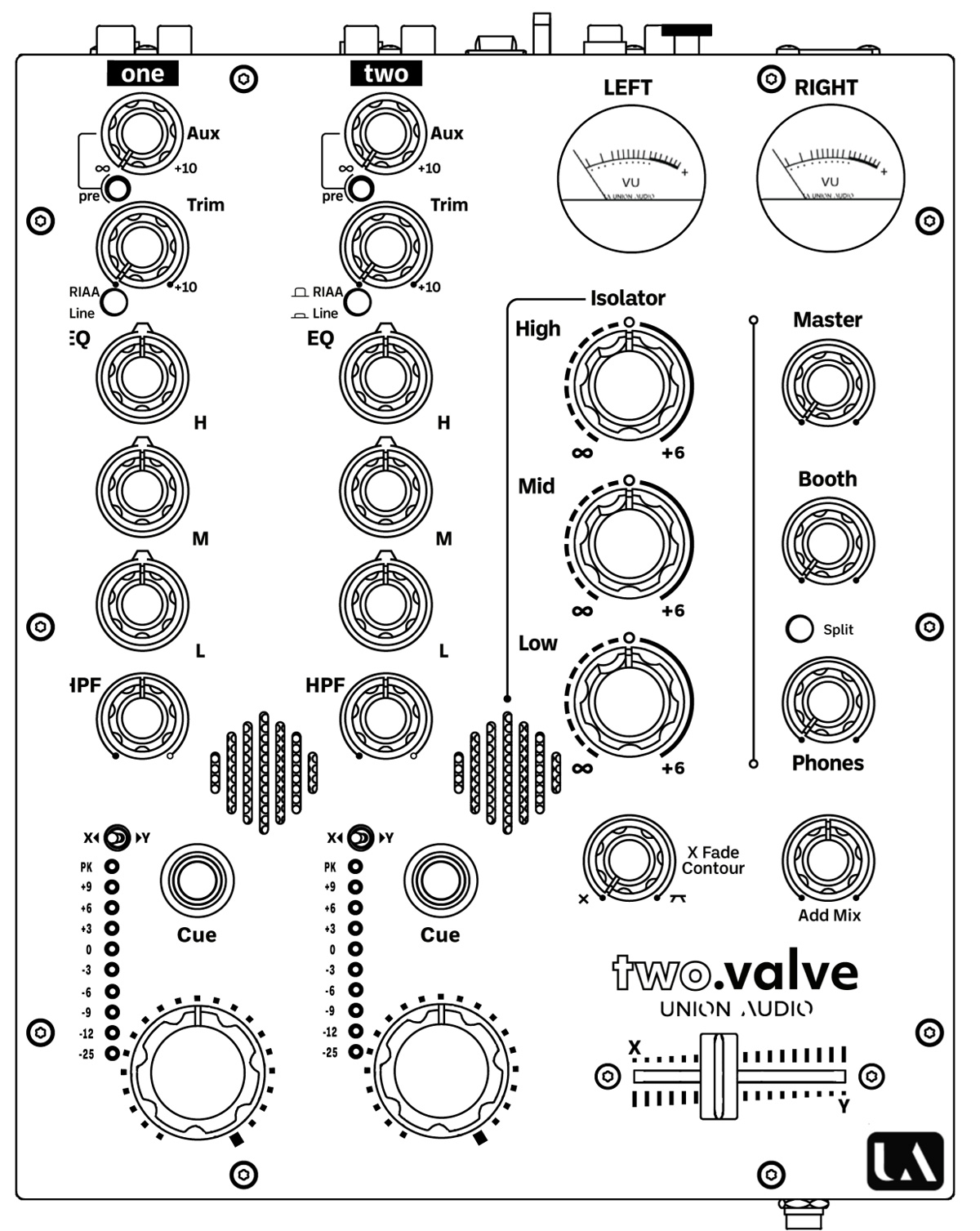 two.valve rotary Mixerは、真空管(バルブ)技術特有の暖かみと質感を求めるオーディオ愛好家やプロフェッショナルのために設計された、プレミアムな2チャンネル・アナログDJミキサーです。卓越した音質、細部までこだわり抜いた職人技、そして真空管回路独自の音響特性を融合させることで、他の追随を許さない比類なきオーディオ体験を提供します。